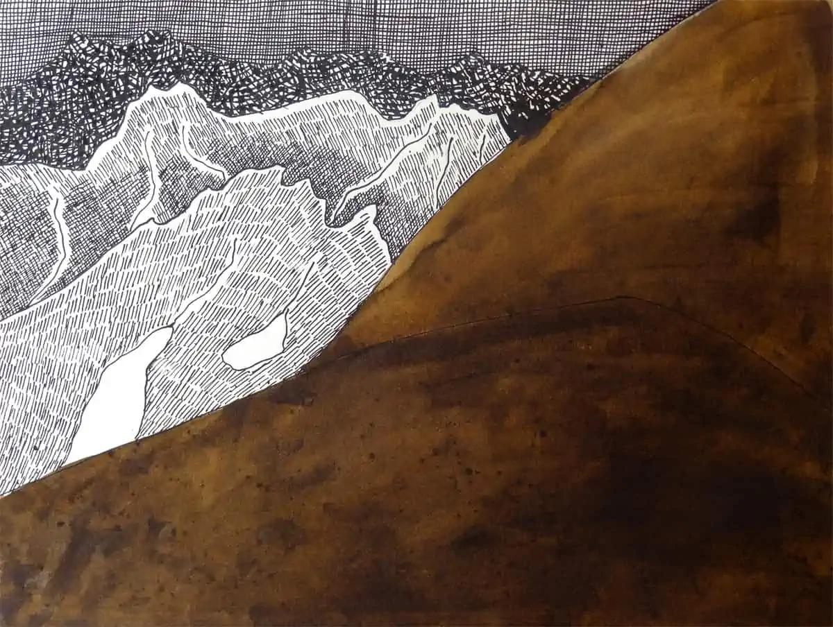 In every landscape, here in a drawing with brown color, there are details that captivate the eyes of both nature lovers and art enthusiasts. Among these details, the brown hill often becomes a central subject of admiration. Its earthy tones blend effortlessly with the horizon, standing as a natural divider between the foreground and the distant mountains.