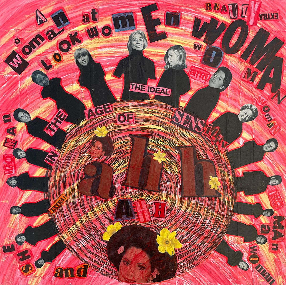 In my artwork “Ahh, Look at Woman,” I draw inspiration from women’s magazines of the 1920s. Specifically, I collect portraits and silhouettes from those publications and use them to explore themes of identity and perception. Moreover, color photography remained limited during that period, so printers relied on grey tones. Consequently, these subtle shades give the source material an elegant, nostalgic charm, which I utilize in my collage art wall creations.
