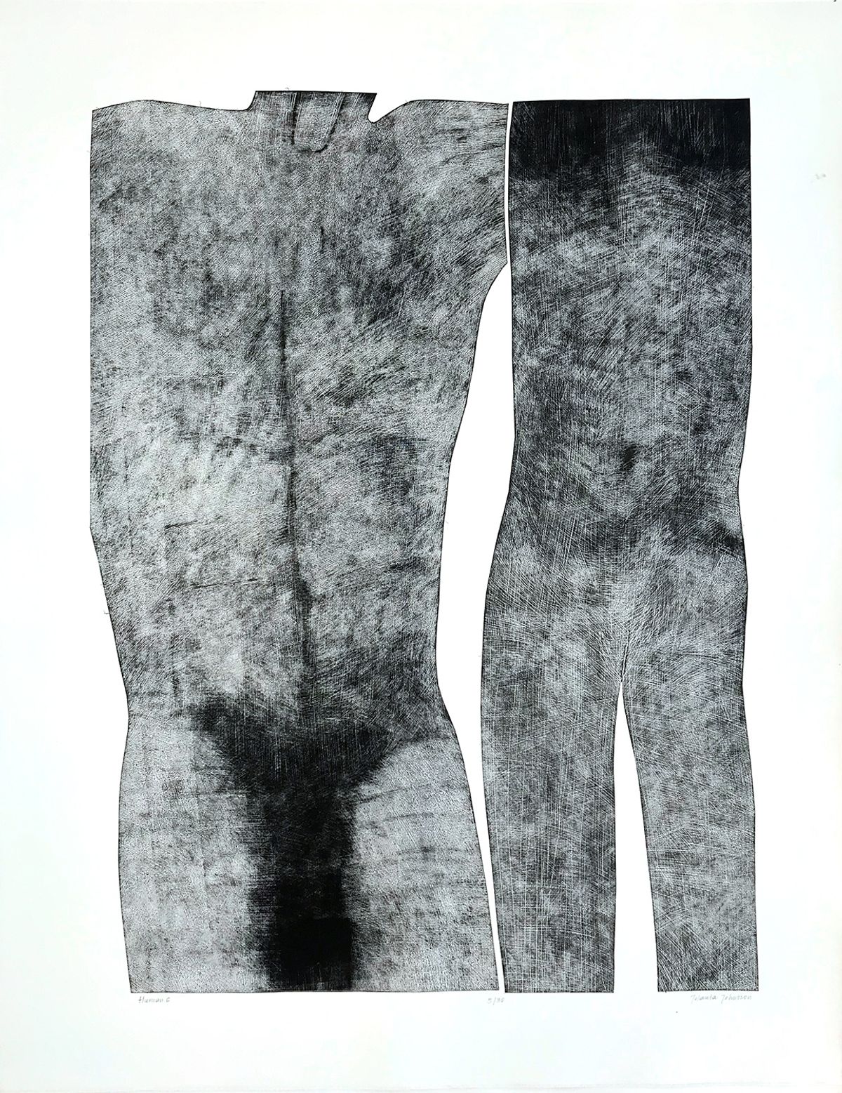 Double figure, two silhouettes - man and woman. They stand close to each other. He puts his arm around her, although we can't see it. There was not enough space in the graphics format. We can only guess. Fragments of their bodies fill the whole picture. In this way, I want to express the greatness of man and his monumentalism. The dark parts of the silhouettes signal the power of eroticism, an inseparable part of us, humans. Double Figure is a graphic art piece from the series Human, numbered no 6, with a unique technique measuring 70 x 50 cm and is limited to an edition of 30 pieces. Its one-of-a-kind visual aesthetic makes it an eye-catching addition to any living space or office. With its vibrant and deep black shapes, this masterpiece will leave you wondering what the artist is attempting to convey. Ask yourself questions about the inspiration behind the artwork, and get inspired by the picture, maybe you too can express yourself on this topic.