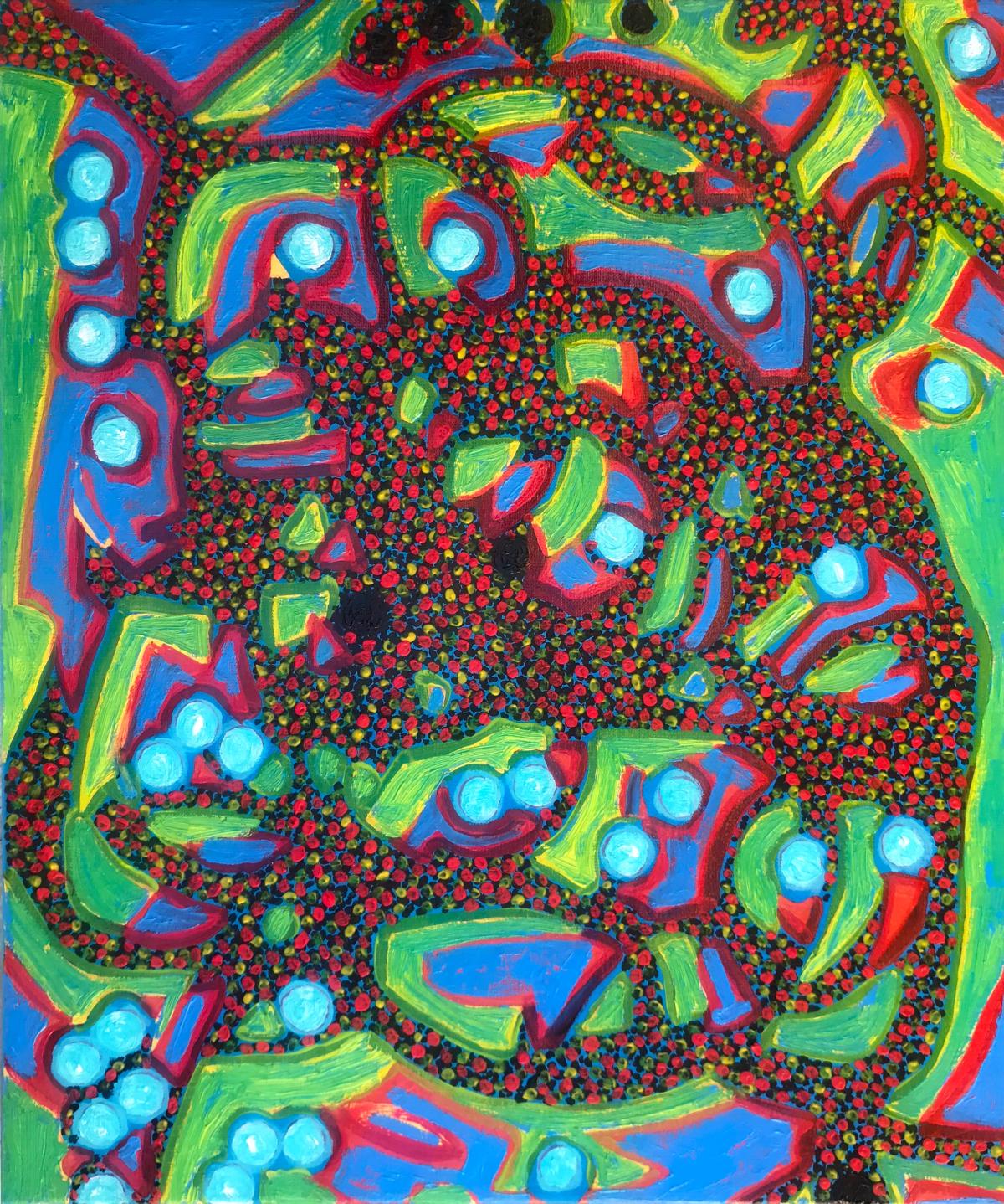 Thus, in this abstract painting, a piece of colorful art, I want to keep memories of the summer. In doing so, I want them to follow with us later in autumn and winter. Maybe this could be as artwork for the living room.