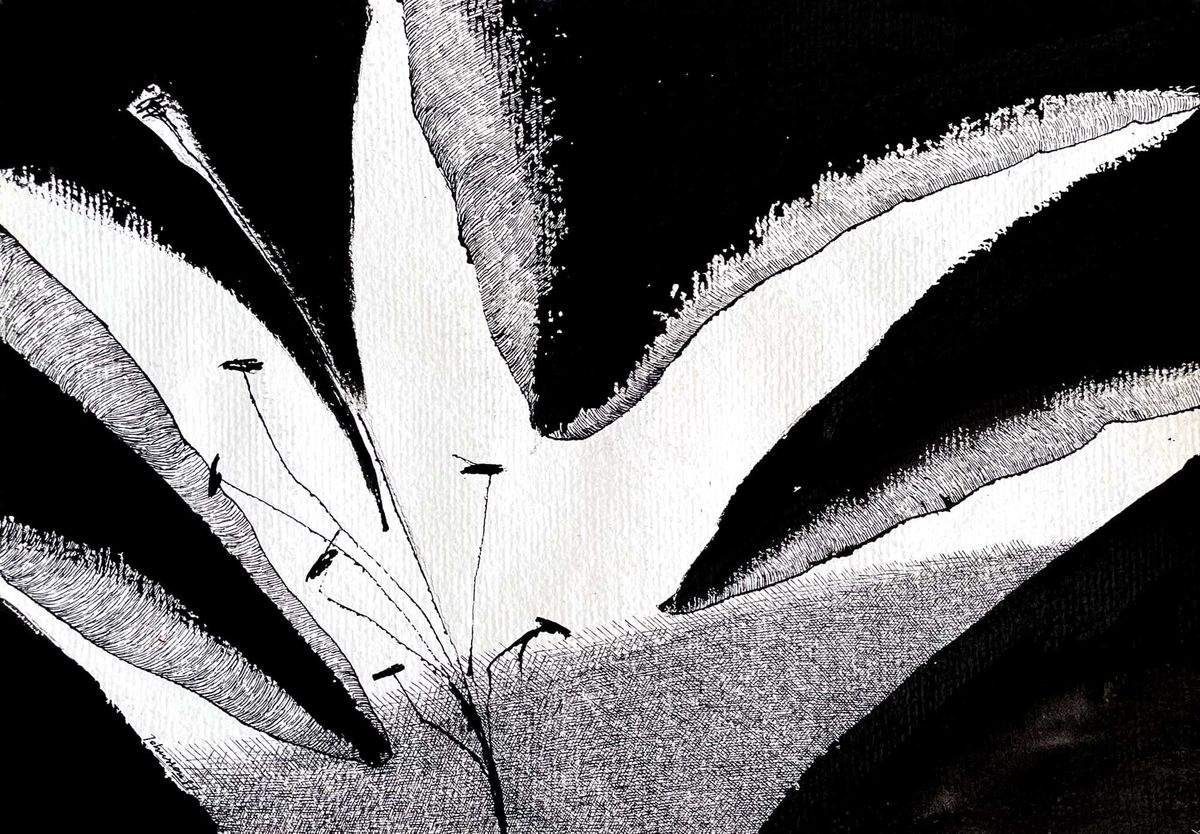 I reach for a pen and ink and draw a picture of the flowers as if I were an architect drawing the structure of a building. I create a flower drawing. This time, I am not a colorist, no Claude Monet lilies are present in the picture. This drawing can be considered a flower coloring page. The viewer can colorize the picture: turn black and white to color.