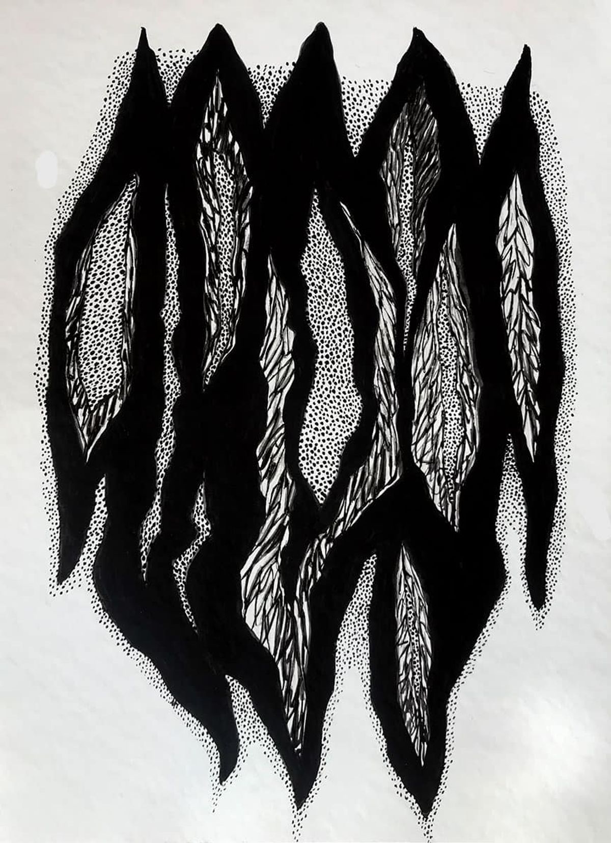 This is how I react when I look at the natural structures of trees, their knots, plants, stones and - I could go on and on and list other elements of the landscape. My observations are spontaneous, I am not bound by the rules of scientific research. My record is nature drawing or an art print in linocut technique. I don't have to reproduce anything. I draw fragments of structures from nature. They do not belong to any species. And yet they would not have come into being if it were not for all that surrounds me.