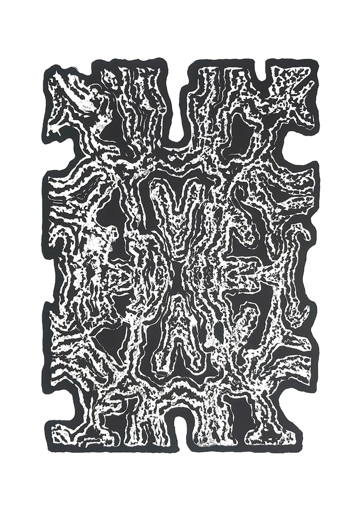 The print art of a structure originates from the series Structures from Nature, created in my graphic studio in Malexander. The surrounding forest inspires every composition. Trees, with their intricate surfaces, patterns, and hidden forms, serve as the foundation for this body of work. Each tree tells a story, and I translate that story into bold graphic expression through linocut printmaking.
