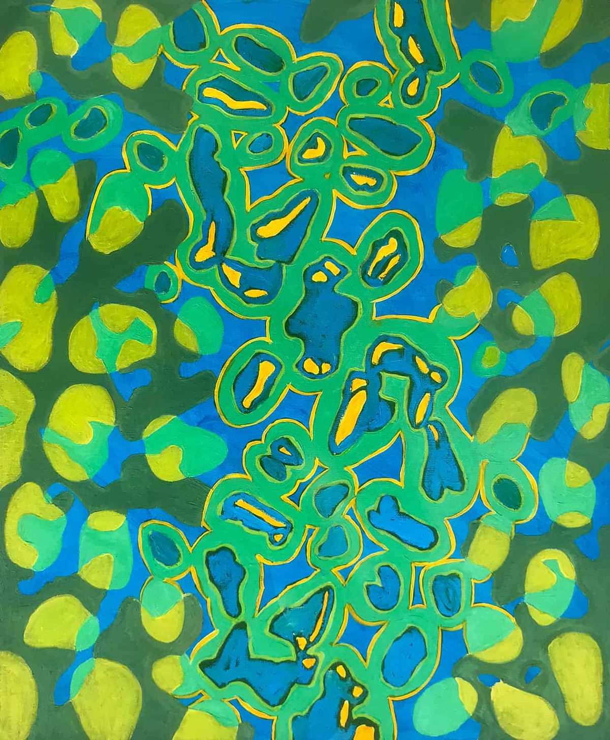 The harmonious blend of greens and blues ensures the painting complements various interior styles while reflecting the essence of natural tranquility.