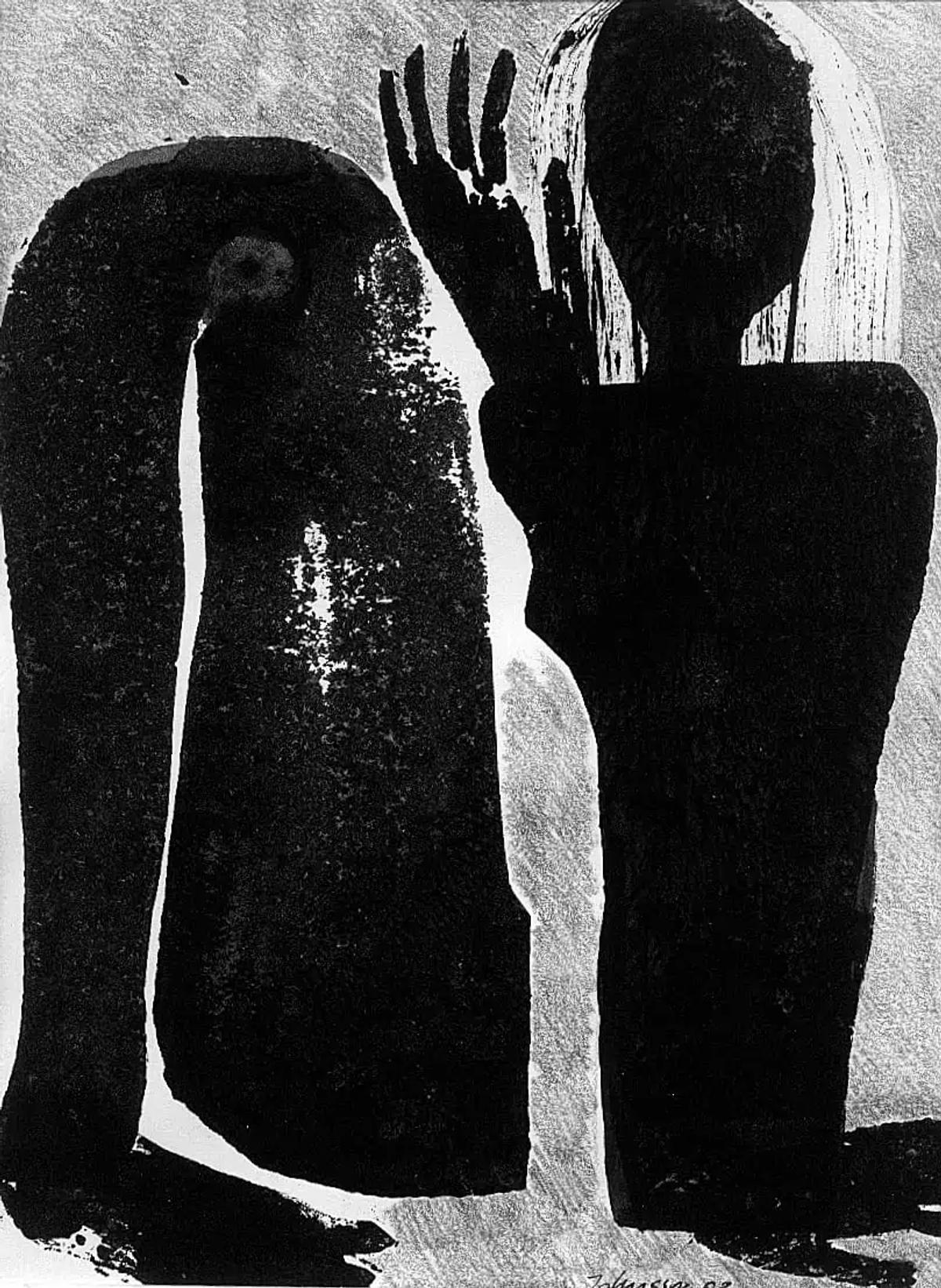 I made this woman black shadow drawing in the evening, when my studio was dark. I worked by the light of a small lamp. The dark shadow of my hunched figure was cast onto the wall, while at the same time I drew the woman’s shadow on paper. It felt as if I was inside the very shadow of the woman that emerged in my drawing.