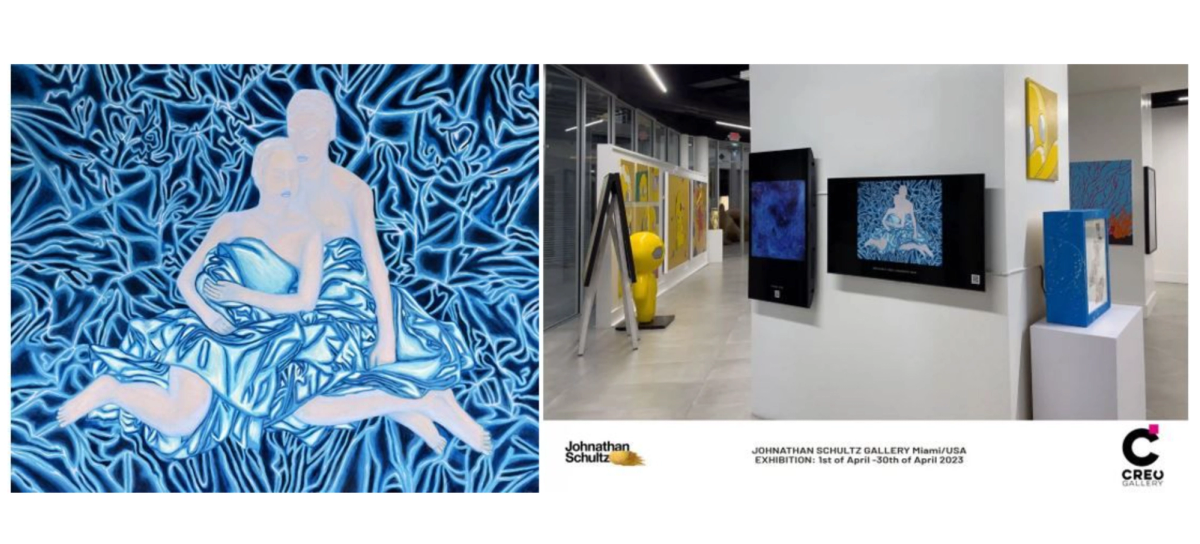 Lost in Blue, a painting by Jolanta Johnsson at the exhibition in Jonathan Schultz Gallery in Miami, USA