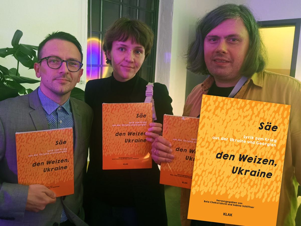 Under this title, a collection of poetry by contemporary Ukrainian poets published the German publishing house KLAK. Specifically, it includes poems by the following poets: Igor Astapenko, Yevgeniy Breyger, Yaryna Chornohuz, Ekaterina Derisheva, Daryna Gladun, Ilya Kaminsky, Iya Kiva, Boris Khersonsky, Marianna Kiyanovska, Oleh Kotsarev, Halyna Kruk, Myroslav Laiuk, Dmytro Lazutkin, Vasyl Makhno, Ihor Mitrov, Oksana Oslomovska, Lesyk Panasiuk, Halyna Petrosanyak, Oksana Sabuschko, Grigory Semenchuk, Iryna Shuvalova, Natalia Trokhym, Iryna Vikyrchak, and Lyuba Yakimchuk.